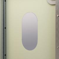 Изготовлено из ударопрочного монолитного поликарбоната толщиной 15 мм. Уникальный конструктив обеспечивает жесткую фиксацию окна в единой плоскости с полотном, не требуя дополнительных крепежных элементов. Исключается образование лишних зазоров и пазов, значительно повышая гигиеничность.