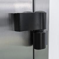 Двери оснащены двухсекционной петлей, которая обеспечивает плавное открывание двери, обладает противовзломными особенностями и регулировкой в трех плоскотях.