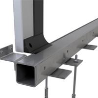 Башмаки устанавливаются через широкие пластины AISI304 с разнесенными точками крепления в пол, что позволяет исключить выкрашивание бетона и распределить нагрузку.
